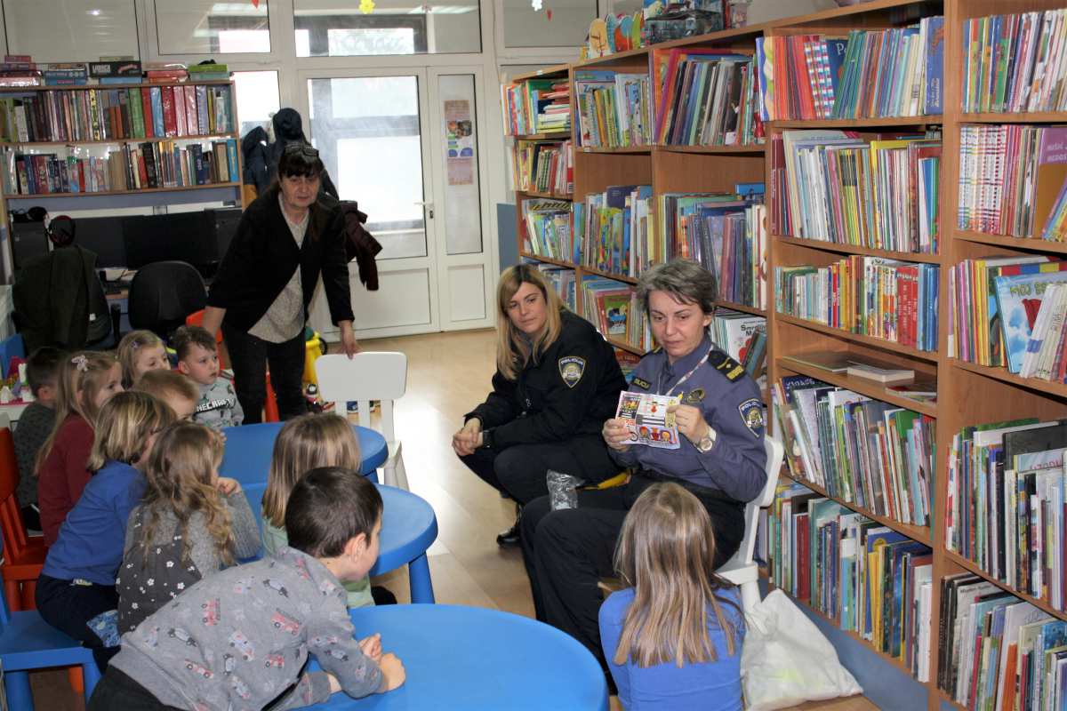 Nakon edukacije djeca su uspješno slagala puzzle koje su vrtić i knjižnica dobili na poklon od Službe za javni red i sigurnost, dok su djeci uručeni reflektirajući privjesci.